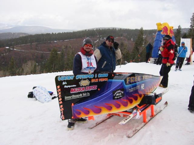 Free Fallin’ was constructed in 5 days and a total of 460 man-hours. Below is a shot of the recently completed sled.